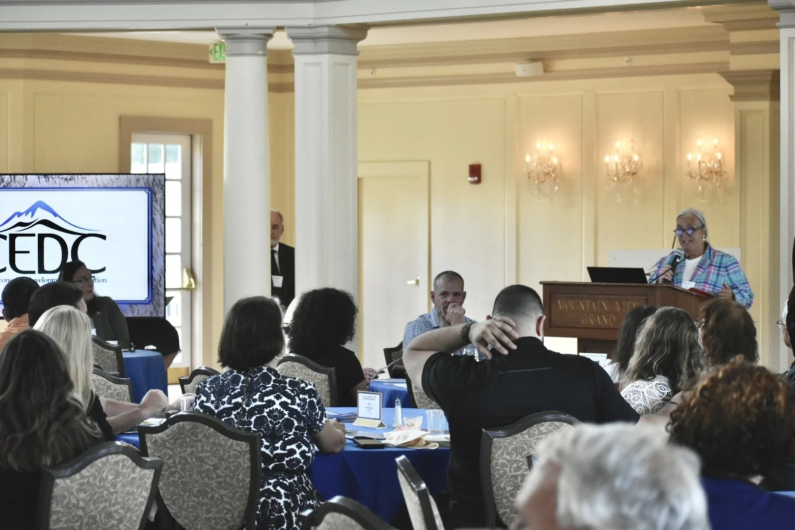 Executive Director Ericka Canales addressed the crowd and provided background information on CEDC Strategic Plan, Goals, and efforts to collaborate with organizations, funders, municipalities, and members of the business community across the state.